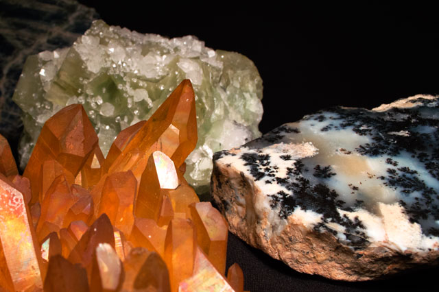 It all comes down to atoms. Each mineral’s atomic structure is arranged in predictable, three-dimensional geometric patterns. When repeated, crystals grow larger following the same geometric pattern, forming the distinctive shapes for each mineral.