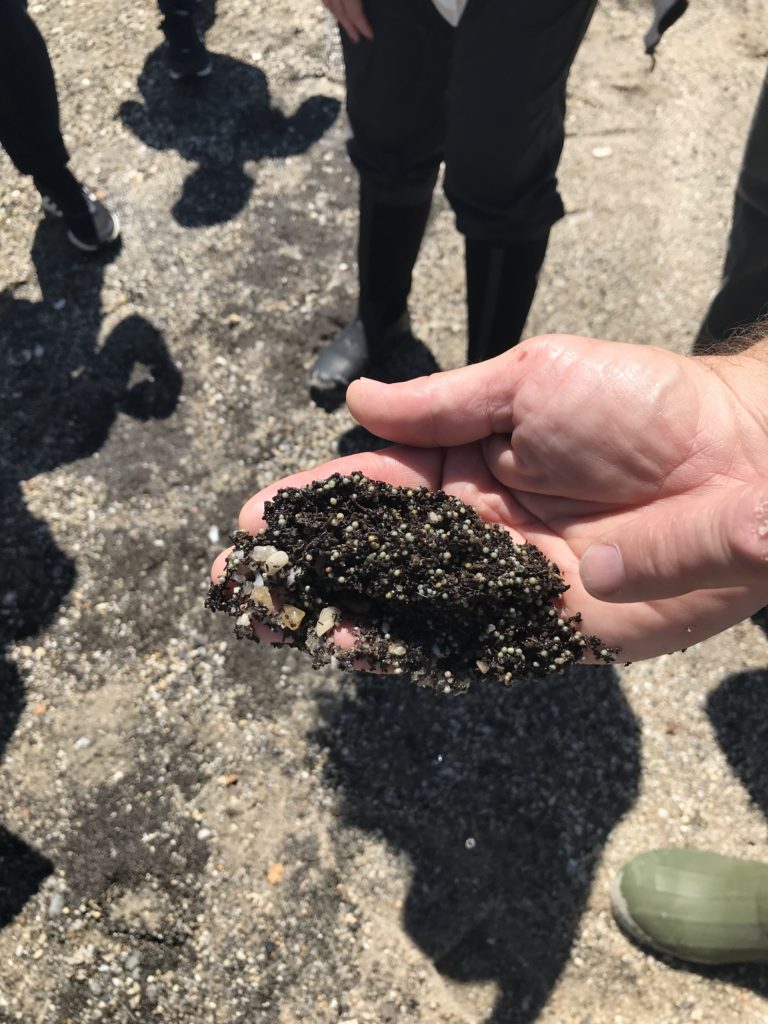 He explains that these volunteers do quite a lot of simple, practical but enormously impactful science work, in addition to rescuing the horseshoe crabs. “They contribute to assessments of shorebird survival and migration stopover behavior by reporting observations of birds marked with coded leg flags to an online database. They also participate in horseshoe crab spawning and egg density surveys organized by HCRC, that has partners in many states along the East Coast.”